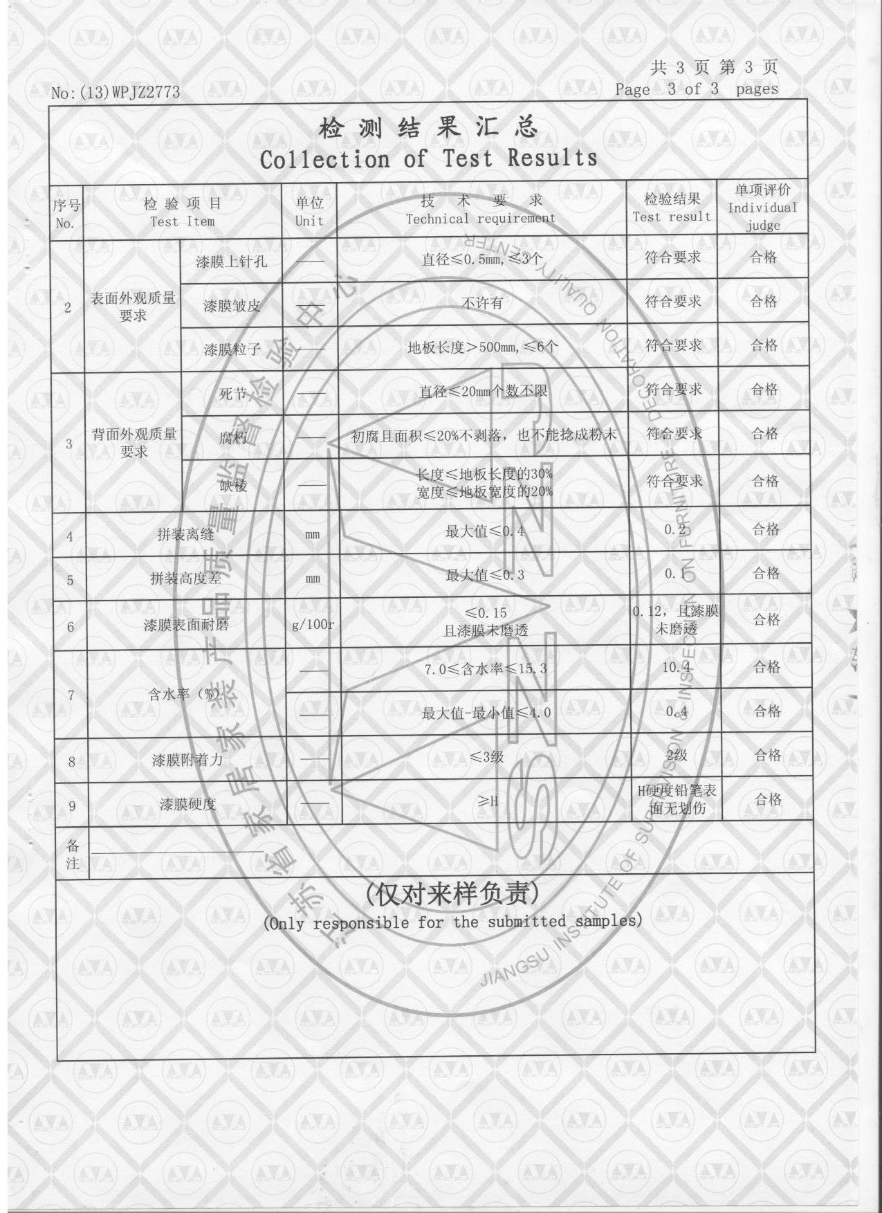 實木地板質量檢測報告3