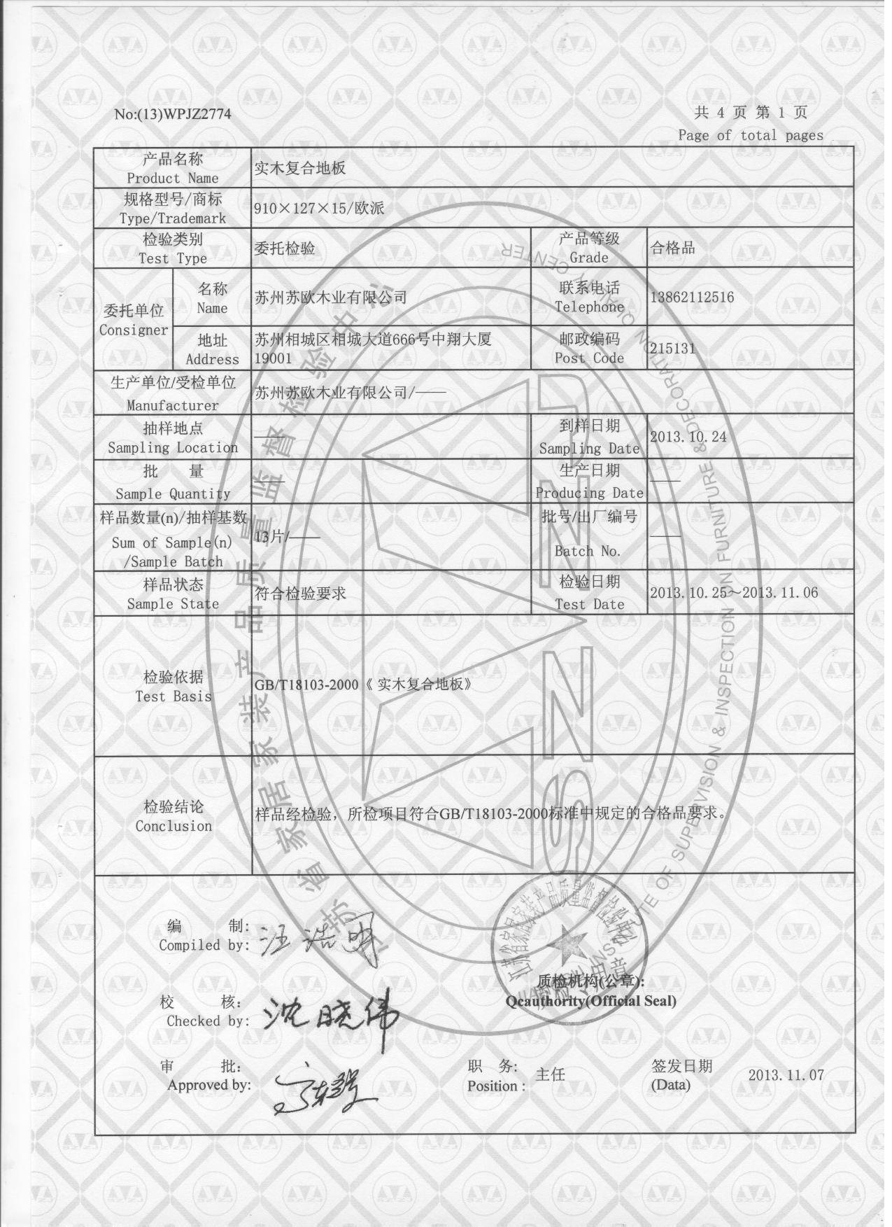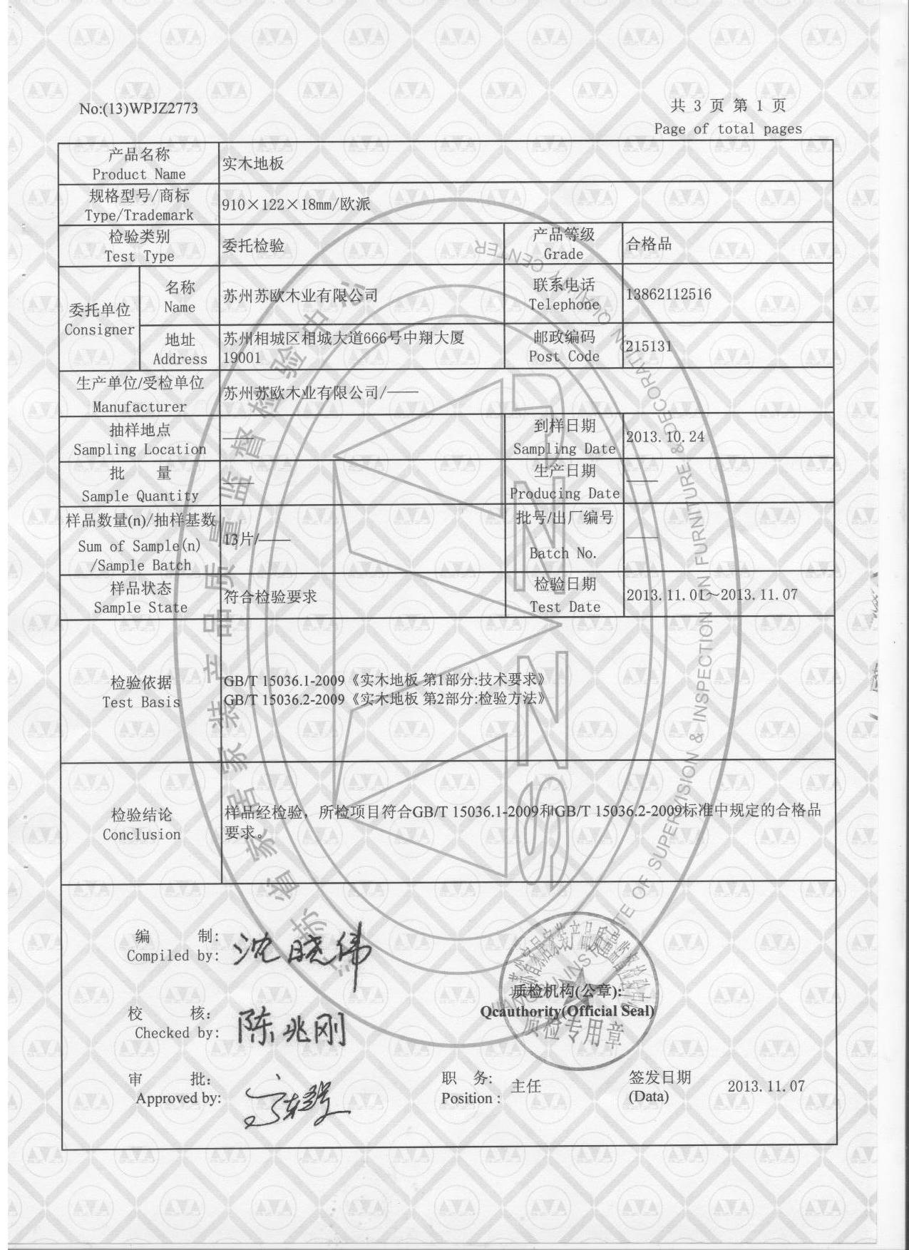 實木復合地板質量檢測報告1