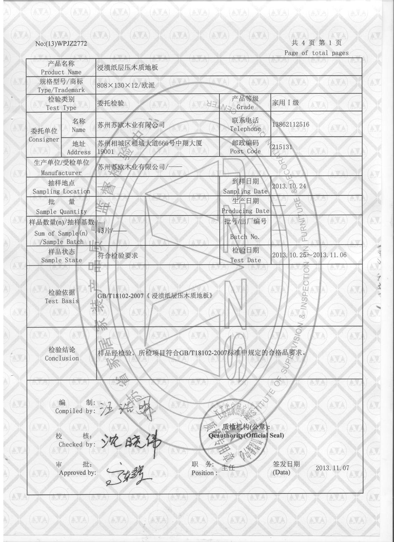 強化地板質量檢測報告4