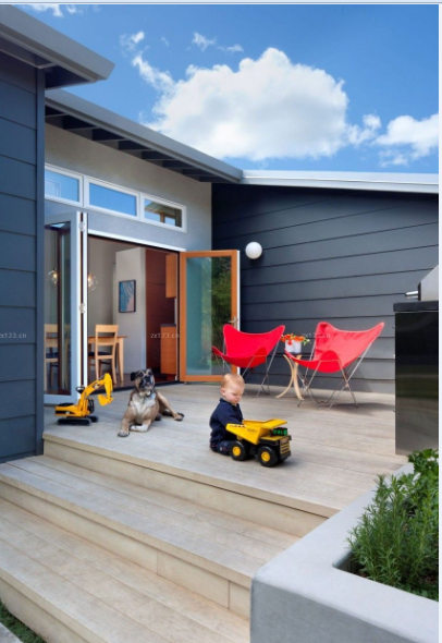 藍(lán)天白云加上白色的橡木,給小朋友一份玩樂時(shí)的寧靜。