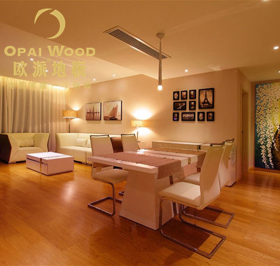 3、效果高檔圓盤豆實木地板顏色深,具光澤,做成深色地板非常高檔,符合中國人的審美觀。