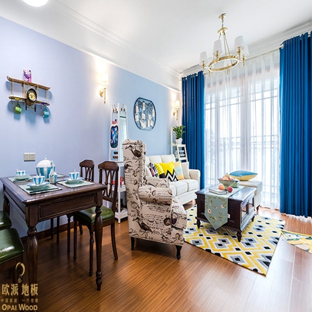 實(shí)木地板的油漆涂裝,基本保持了木材的本色韻味,色系較為單純,大致可分為紅色系、褐色(咖啡色)系、黃色系。每個(gè)色系又分若干個(gè)不同色號(hào),幾乎可以與所有常見的家具和流行的家具裝飾面板相配色。實(shí)木地板與家具配色,有三個(gè)可以遵循的原則: